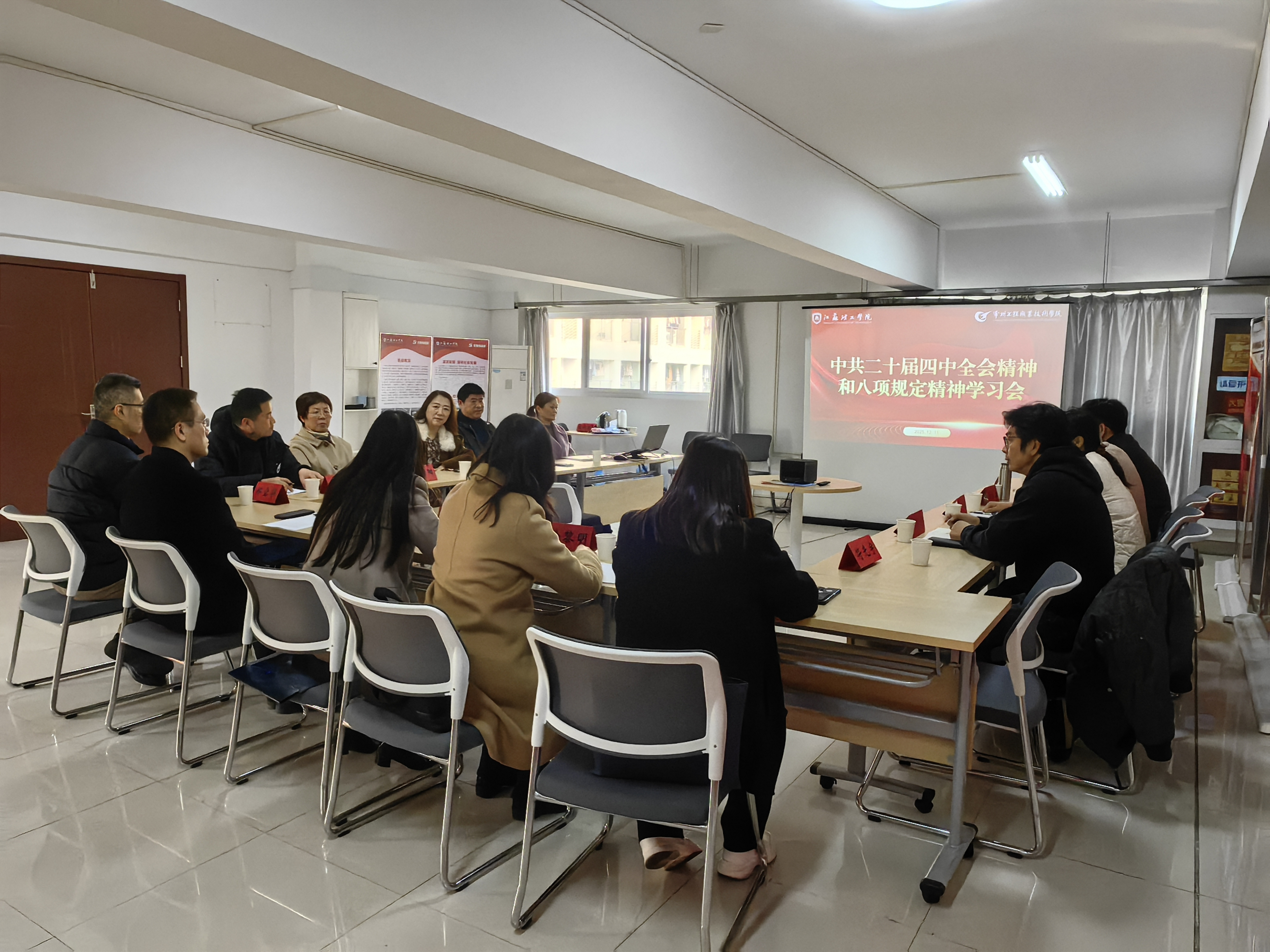 12月11日下午,民建江理工支部会员与民建常工程支部会员我校统战之家联合开展“中共二十届四中全会精神和中央八项规定精神”专题学习会。副校长、民建江理工支部主委叶霞、民建江苏理工学院支部会员,常工程校党委委员、纪委书记徐黎明、统战部副部长苏春菊参加了此次学习研讨会。